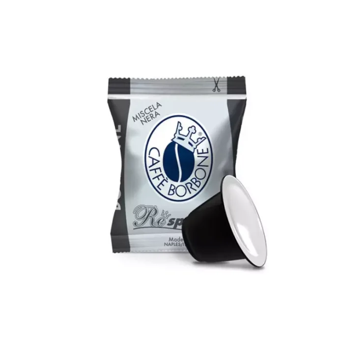 The Nespresso® compatible Capsules Caffè Borbone black blend in packs of 100 are perfect for palates who prefer to appreciate not only the aroma but also the creaminess of the coffee in the cup. The perfect dosage of Robusta and the degree of roasting contribute to making this blend excellent in terms of taste, aroma and creaminess. Respresso is the name of the Borbone Nespresso®* compatible capsules, specially made to work on the best Nespresso® coffee machines, such as the Citiz, Essenza, Inissia, Pixie machines.