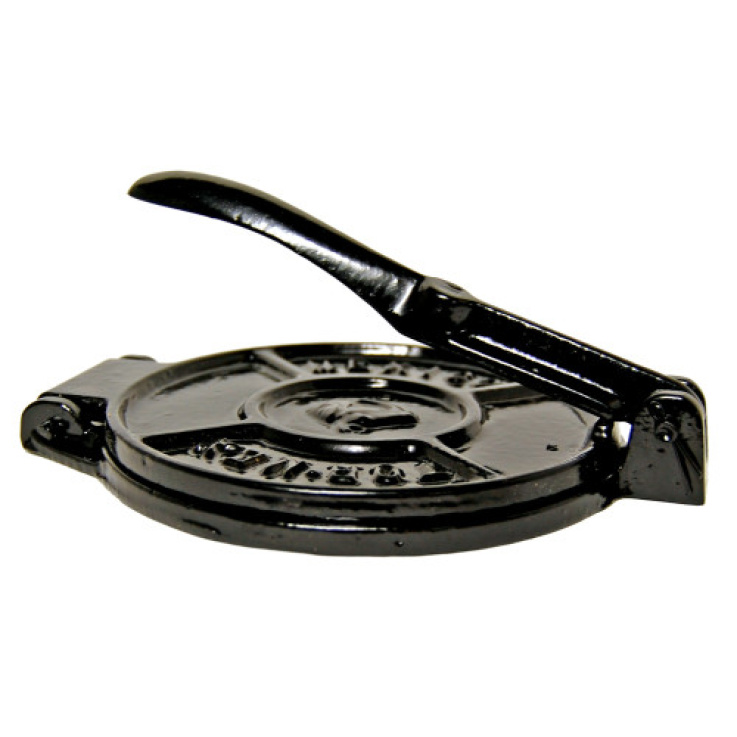 Tortilla presses made of cast iron, coated in black paint, are especially designed to make authentic corn flours in the artisan way. Each press comes with a plastic sheet that must be placed between the 2 walls, as the dough must not touch the metal. Rinse with hot water and dry thoroughly prior to initial use. After use, the press should be relatively easy to clean, and a wipe down with a dry towel should suffice. If that is not enough, clean immediately with hot water and a brush. Rinse and dry thoroughly.