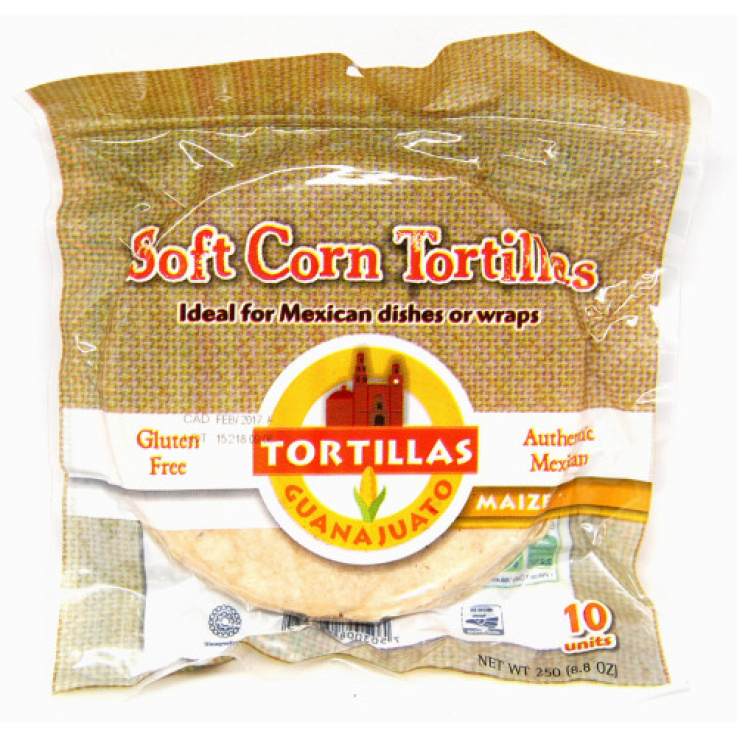 15cm Corn Tortillas (10 tortillas per pack). Tortillas, originally known as tlaxcalli, have been a stable food for more than a millenia, dating back as far as 10,000 years BCE. Tacos are very popular for lunch or dinner. Corn has been a staple for more than a millenia. They are perfect for making tacos, quesadillas, flautas and even tostadas (just fry them to crisp) or bake them for 20 minutes at 180 C. Tortillas can be used to prepare assorted types of tacos, such as regular tacos, golden tacos (fried until crispy), flautas (flutes rolled taquitos, looking like thin flutes). When cut into triangles and fried they become totopos (tortilla chips) to prepare chilaquiles with sauce or just to be dipped in cheese or guacamole. When cut in strips, they are used to make tortilla soup; a delicious hot soup with a zingy flavour to chipotle. Heat on a dry hot plate for 10 seconds per side. If it’s too dry, spray with water or add a little oil.