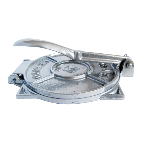 Tortilla press made of cast iron, coated in silver paint, are especially designed to make authentic corn flours in the artisan way. Each press comes with a plastic sheet that must be placed between the 2 walls, as the dough must not touch the metal. Rinse with hot water and dry thoroughly prior to initial use. After use, the press should be relatively easy to clean, and a wipe down with a dry towel should suffice. If that is not enough, clean immediately with hot water and a brush. Rinse and dry thoroughly.
