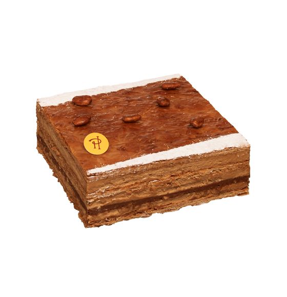 Pâte feuilletée caramélisée, praliné feuilleté aux noisettes du Piémont, crème mousseline au praliné.