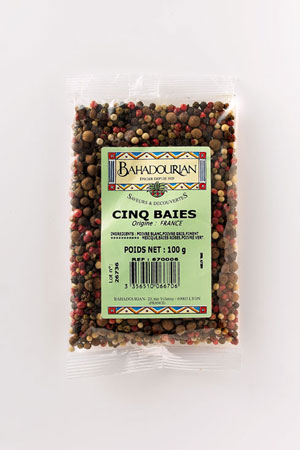• Ingrédients : Poivre Blanc, Poivre Gris, Piment du Mexique, Baies Roses, Poivre Vert. Fabriqué dans un atelier qui utilise: CÉLERI, SÉSAME, MOUTARDE, GLUTEN, SULFITES. Valeurs Nutritionnelles pour 100g de Matières: Energie: 279 kcal Lipides: 4,47 g Protéines: 10 g Acides Gras Saturés: 1,3 g Glucides: 59g Sucres: 47,62 g Sel (mg): 77,4 mg