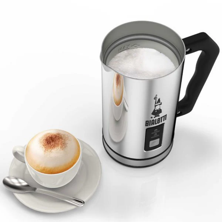 L‘émulsionneur à lait électrique de Bialetti est parfait pour réaliser vos boissons lactées maison. En acier inox 18/10 poli, son manche en bakélite noir assure une prise en main parfaite. Le revêtement intérieur 2 couches est anti-adhérent et permet un nettoyage facile.