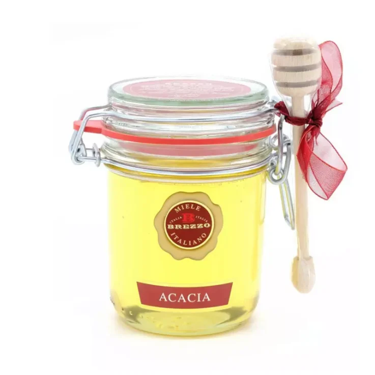 Brezzo Acacia Honey 400 g from the Antologia line is a delicacy obtained from selected hives in the best blooms. Like all honeys in the Antologia Brezzo range, this Acacia honey represents the best of the annual production, carefully selected to guarantee superior taste and quality. Packaged in an elegant hermetic jar and enriched with a wooden honey spreader, it is perfect not only for daily consumption but also as a gift idea for true connoisseurs. Its light colour varies from white to straw yellow, and its delicately sweet flavour makes it ideal for sweetening hot drinks and coffee, accompanying yoghurt, mascarpone, fresh and blue cheeses, or enhancing the taste of tarts and fruit cakes. An exclusive honey for those who love authentic flavours and uncompromising quality.