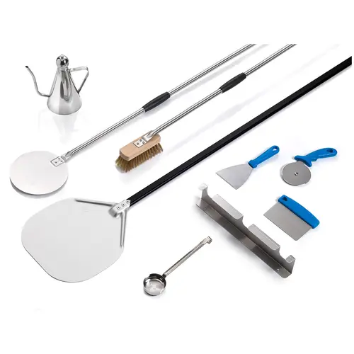 Faire de la pizza n’aura jamais été si facile ! Grâce au vaste jeu d’accessoires à pizza de Gi.Metal, vous aurez tout ce qu’il faut pour des pizzas cuites à point. Ce lot comprenant pelles à enfourner, brosse, roulette à pizza, verseuse à huile et racloir est tout ce dont vous aurez besoin pour des soirées à l’italienne réussies, que vous dévoiliez votre génie dans une cuisine collective, une pizzéria ou à la maison avec un four à bois.
