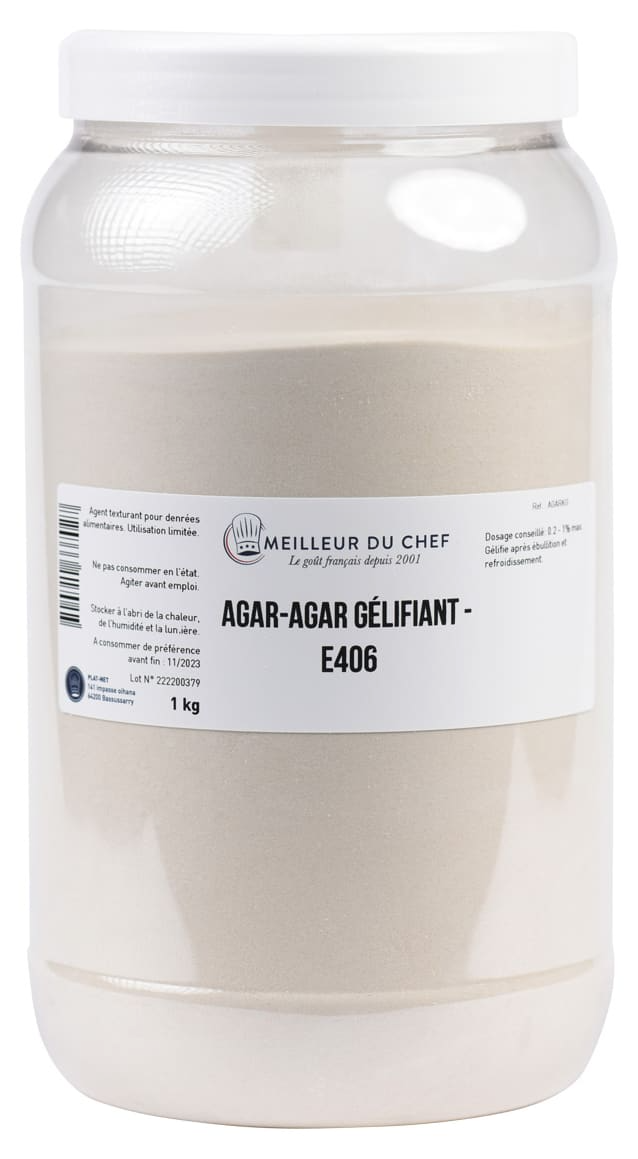 L’agar agar est issu d’une algue rouge et dispose d’un fort pouvoir gélifiant. Il n’apporte aucun goût ni odeur à vos préparations. Dans la plupart des cas, l’agar agar remplace la gélatine animale.