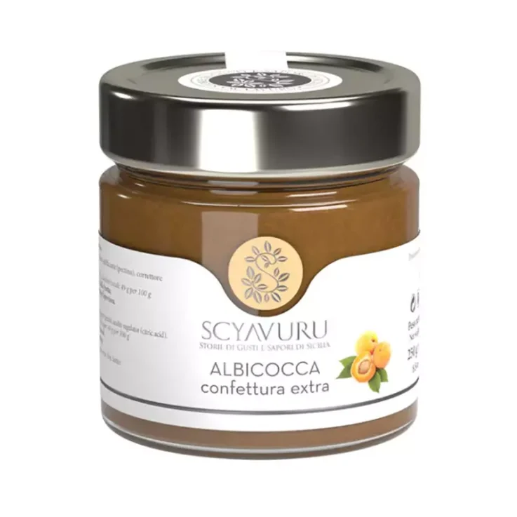 Scyavuru Apricot Extra Jam is the most classic of preserves, the most loved and used to enrich cakes, tarts or fill tasty brioche. Scyavuru’s is excellent, made from the sweetest and ripest apricots with the addition of strictly natural pectins to keep intact the nutritional properties the color and smell of the fruit. The ancient tradition was to use the fruit combined with honey to make preserves. And Scyavuru does just that, using the finest fruits offered by beautiful Sicily with only the substitution of sugar for honey. This extra apricot jam is made with the tastiest fruits, which give it an intense flavor and a beautiful vibrant color.