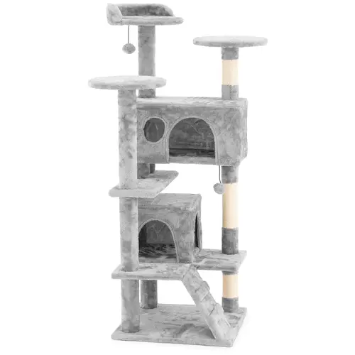 Arbre à chat – Gris clair – 2 balles incluses – 49 x 49 x 137 cm