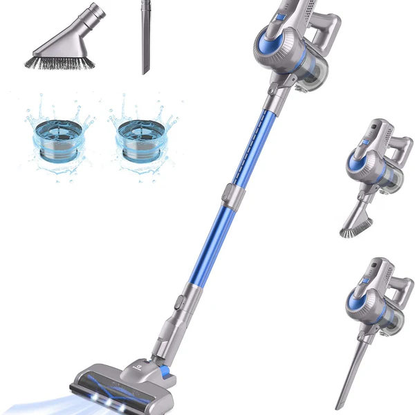 aspirateur balai sans fil est équipé de plusieurs brosses, y compris une brosse pour les interstices, ce qui facilite le nettoyage des espaces restreints tels que les escaliers et l’intérieur des voitures. Il peut être utilisé comme aspirateur à main pour nettoyer les tapis, les canapés, les rideaux et même les claviers d’ordinateur. La conception du tube extensible (plage d’extension de 60 à 80 cm) facilite le nettoyage des endroits élevés.aspirateur balai sans fil dispose de 6 batteries intégrées de 2 200 mAh et d’un puissant moteur de 200 W, avec une puissance d’aspiration maximale de 23 KPA. Deux modes d’aspiration : le mode standard dure environ 35 minutes et le mode haute vitesse dure environ 18 minutes. Pour les petits ménages, il peut nettoyer toute la maison avec une seule charge.aspirateur balai sans fil est équipé d’un système de filtration HEPA H11 à 5 niveaux, capable de capturer 99,98% des particules fines.Aspirateur balai sans fil vous offre un air plus propre et plus sain. Son filtre lavable hautement efficace est équipé de deux filtres HEPA lavables, ce qui prolonge la durée de vie de l’aspirateur et en fait un excellent allié pour nettoyer les cheveux. La brosse de sol principale de aspirateur balai sans fil est dotée d’un rouleau batteur motorisé et de lumières LED pour une meilleure expérience.Il dispose également d’une fonction de rotation à 270 degrés pour éliminer facilement la saleté des espaces sombres pour un nettoyage facile. La brosse à sol s’ouvre avec un petit outil de nettoyage des cheveux qui aide à éliminer les cheveux et les débris emmêlés dans le rouleau de la brosse.Aspirateur balai sans fil a un poids net de seulement 2,64 livres et est facile à utiliser. Vous pouvez le monter et descendre les escaliers, nettoyer l’intérieur de la voiture etréduire les espaces dans les escaliers, et la conception verticale peut être placée à tout moment. Aspirateur laveur sans fil est facile à utiliser et à nettoyer. La conception de vidange à un bouton peut évacuer la poussière du bac à poussière en 1 seconde, ce qui est simple et pratique.