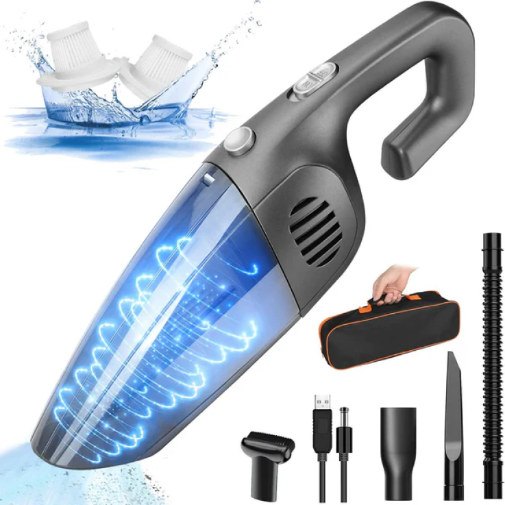 Notre aspirateur à main adopte un moteur haute puissance de 120W + une conception de rail d’air linéaire, qui peut réduire la résistance au vent, fournir une aspiration ultra élevée de 8000PA, peut absorber la poussière et les particules aussi petites que 0,3 microns, et faire vos familles restent à l’écart des allergies. Pas plus de 50 dB de plumeau à faible bruit ne perturbera pas le sommeil de bébé pendant la succion.Filtres remplaçables, filtrent au moins 99,97% des particules d’un diamètre d’au moins 0,3 microns à la fois, soit près de 5 fois celui des filtres traditionnels, réutilisables et lavables. De plus, le sac de rangement inclus rend également l’mini aspirateur plus pratique à transporter.Cet aspirateur voiture puissant est livré avec quatre accessoires fonctionnels – tuyau souple rétractable, buse d’aspiration longue, buse d’aspiration à brosse et 1 connecteur auxiliaire. Il vous permet de nettoyer efficacement les déchets n’importe où, les coins, les recoins ou d’autres endroits difficiles d’accès.L’aspirateur a main est équipé d’un câble de données de type C. Vous pouvez le charger gratuitement à l’aide d’une banque d’alimentation, d’un ordinateur, d’une voiture ou de votre propre adaptateur et câble de type C. La batterie rechargeable avancée intégrée fournit 30 minutes de temps de travail et se recharge complètement en 2-3 heures.1 * aspirateur à main sans fil, 1 * tuyau souple rétractable, 1 * buse longue, 1 * buse de brosse et 1 * connecteur auxiliaire, 1 * câble USB, 2 * filtres HEPA, 1 * sac de rangement, 1 * Manuel de l’Utilisateur