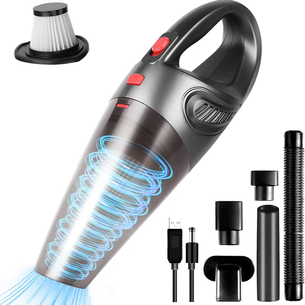 spirateur de voiture sans fil avec un cordon d’alimentation de 16 pieds et grande poubelle peut contenir plus de 500ml de déchets, vous pouvez vous déplacer librement dans la pièce sans interférence de câble et faire ce que vous voulez. 120W aspirateur à main est doté d’une poignée à fond plat légère et ergonomique qui peut être utilisée pour nettoyer les escaliers, les cuisines, les voitures et les coins difficiles d’accès.aspirateur de voiture pour cuisine utilise une batterie rechargeable lithium-ion de grande capacité de 2500 mAh et un moteur super puissant de 120 W, une vitesse nominale de 28 000 tr/min, une aspiration maximale de 8 500 PA et une capacité de réduction du bruit. 120w aspirateur de voiture est robuste et durable, il ne prend que 3 à 4 heures pour se charger complètement et le temps de travail est d’environ 30 minutes.aspirateur de voiture a une forte puissance d’aspiration & peut être utilisé pendant longtemps. Aspirateur voiture peut être utilisé pour nettoyer poussière, cheveux, saleté, litière pour chat, poils d’animaux, etc. Vous n’avez plus à vous soucier des résidus de poussière et de bactéries ! aspirateur à main peut être nettoyé à tout moment pour le garder propre & bien rangé. aspirateur à main a passé les certifications de sécurité CE, ROHS, FCC et MSDS.aspirateur de table de voiture selon le principe de l’amortissement mécanique, produit un son inférieur à 50dB, forte aspiration, ne dérangera pas vos enfants, ni ne fera fuir vos animaux de compagnie. Aspirateur est 480g, facile à transporter.URAQT aspirateur de voiture pour voiture a le filtre haute densité le plus avancé, amovible et propre, est plus puissant et durable que les filtres traditionnels. Et bloquer efficacement l’eau.