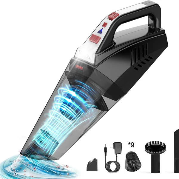 Aspirateur à main sans fil est doté d’un moteur de 120W avec une puissance d’aspiration allant jusqu’à 9 kPa, qui peut facilement ramasser la poussière et les petites quantités de liquides. Qu’il s’agisse de miettes, de boue ou de poils d’animaux. Cet aspirateur de voiture sur élimine sans effort la saleté des endroits difficiles à atteindre.Avec une batterie de seulement 1 kg, aspirateur voiture ménage vos mains et vos articulations pour toutes les tâches de nettoyage et fonctionne sans effort. La lumière LED de l’aspirateur Hihhy éclaire les coins sombres et nettoie sans effort les zones difficiles à voir.Aspirateur à main sans fil Hihhy est livré avec trois types de buses différents. Suceur plat – Élimine la saleté dans les espaces restreints. Brosse – Enlève sans effort la saleté du tapis. Brosse à poils d’animaux – Un outil professionnel de nettoyage des poils d’animaux qui, lorsqu’il est utilisé avec le suceur plat, aide à éliminer les poils d’animaux tenaces collés aux vêtements ou aux tissus d’ameublement.Les aspirateurs de voiture sont équipés d’une batterie lithium-ion 12,6V 2200 mAh qui offre jusqu’à 30 minutes d’autonomie supplémentaire et une charge élevée constante. Peut être entièrement chargée en 2,5-3 heures. Offre de multiples fonctions de protection de la charge pour assurer la sécurité de l’appareil et votre sécurité pendant l’utilisation.Le mini aspirateur a un grand bac à poussière de 500 ml, il vous suffit de le vider à l’aide d’un bouton à un intervalle plus long. L’élément filtrant de haute qualité filtre au moins 99,97 % des particules en une seule fois. Vous pouvez le nettoyer ou le jeter Nous mettons à votre disposition 9filtres en non-tissé à remplacer. 2 fois plus durable que les filtres traditionnels