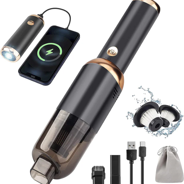 plus qu’un simple aspirateur portable, la batterie amovible sans fil dispose d’une prise USB pour charger votre téléphone. En même temps, c’est aussi une lampe de poche puissante, il suffit d’appuyer longuement sur l’interrupteur pour allumer la lumière. Il convient à une variété de scénarios et vous donne plus de commodité.Le puissant mini aspirateur est équipé d’une batterie haute capacité de 4000 mAh ; la puissance d’aspiration de 9500 Pa permet de ramasser facilement les débris. La batterie est amovible, mais vous devez vous assurer que le bouton de verrouillage du corps est sorti après l’installation de la batterie, sinon cela peut facilement provoquer une panne de courant en raison d’un mauvais contact pendant l’utilisation.le mini aspirateur sans fil utilise un design compact et compact tout en offrant des performances, des embouts et des poignées amovibles, et un étui de transport pour un stockage et un transport plus faciles. Faites facilement face à divers scénarios de nettoyage.cet aspirateur de voiture est livré avec un câble de charge d’entrée USB, vous pouvez utiliser des prises domestiques, un ordinateur portable, un ordinateur de bureau, une banque d’alimentation et des ports USB de voiture pour charger facilement et commodément.l’aspirateur de voiture portable offre deux filtres HEPA lavables amovibles pour une utilisation alternative, évitant la perte d’aspiration due à l’accumulation de poussière. Il suffit de dévisser le corps pour sortir les poubelles, de rincer le filtre et de le laisser sécher avant de pouvoir le réutiliser.