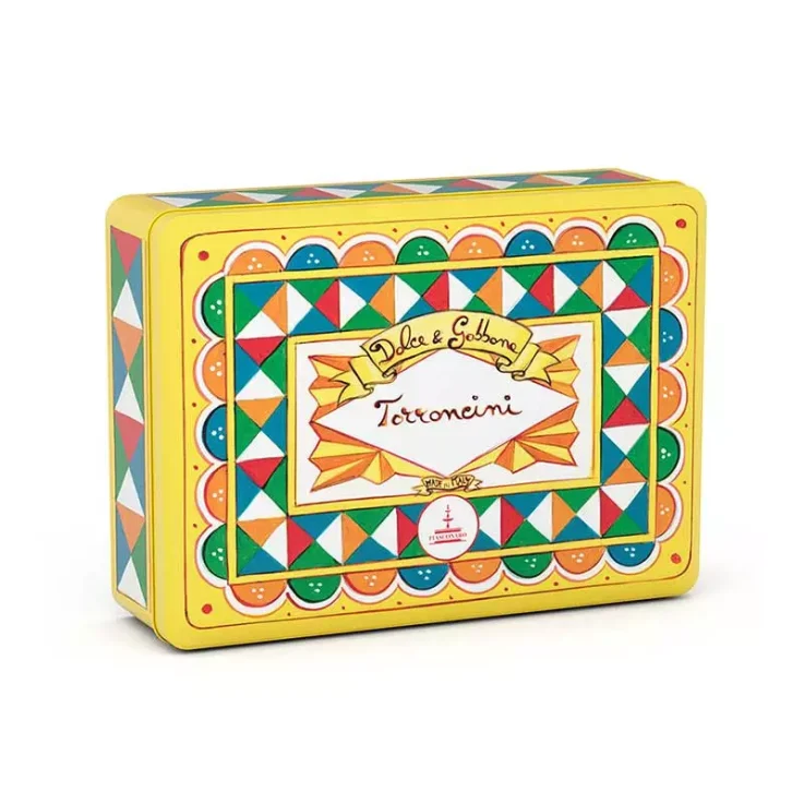 Fiasconaro assorted soft torroncini covered in chocolate are an artisanal Sicilian delicacy that will please both adults and children. Enclosed in the elegant and colorful tin box with a Dolce & Gabbana design with matching D&G shopping bag, these nougats with pistachios and toasted almonds differ in the different chocolate coatings: dark, milk and white flavored with orange. With the Dolce and Gabbana line, the Sicilian confectionery art of Fiasconaro meets the excellence of Italian design and fashion, for a collaboration that is a true hymn to Made in Italy in all its forms: artisanal, authentic, beautiful.