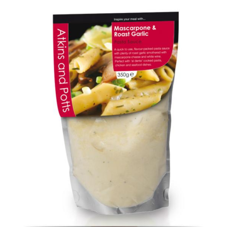 Atkins & Potts Sauce pour pâtes au mascarpone et à l’ail rôti sans gluten 350g