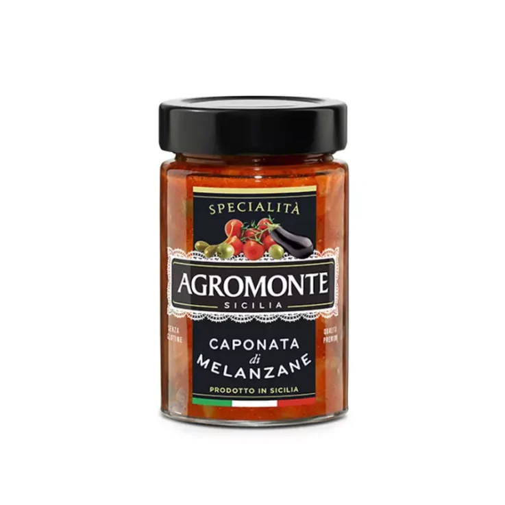 Agromonte Aubergine Caponata 200 g is the essence of Sicilian tradition ready to be enjoyed. Perfect for spreading on bruschetta, canapés or serving as an appetiser, this delicious speciality gives you the authentic flavours of the Mediterranean summer. Prepared with artisanal methods and following traditional recipes, Agromonte Caponata with fried aubergines is made with simple ingredients: quality aubergines, cherry tomato sauce, green olives and capers. A ready-made dish that brings all the taste and fragrance of Sicily into your home.