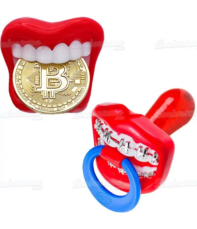 WOM – Sucette-tétine multifruit en forme de dentier vendu en gros conditionnement sur une tour présentoir contenant 48 unité