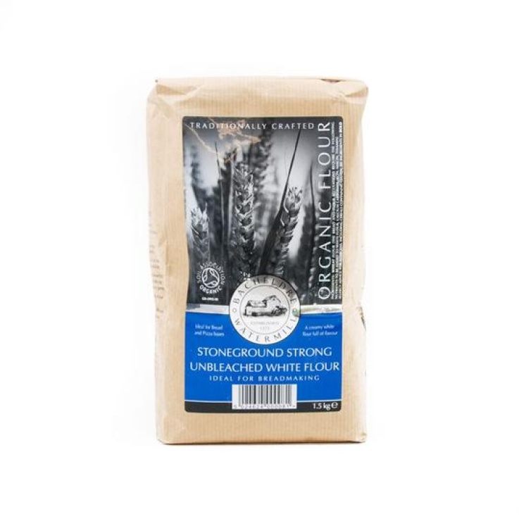 Bacheldre organic stoneground unbleached strong white flour is suitable for baking by hand and with bread machines. It includes a recipe for a white loaf.