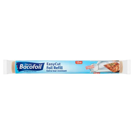 The perfect partner to the Bacofoil® Refillable EasyCut Foil Dispenser. The Bacofoil® EasyCut Foil Refill contains 15m of high quality foil and is incredibly versatile and easy to use. Perfect for grilling, roasting and wrapping food, and can even be used to store leftovers in the refrigerator or freezer. With its tear resistant properties, Bacofoil® EasyCut Foil Refill can be moulded to any shape you like. Able to withstand high heat and extreme cold, it’s the perfect all-rounder for protecting food. Tear-resistant, Heat-resistant, Retains its shape. Suitable for grilling, baking, roasting, wrapping and freezing.