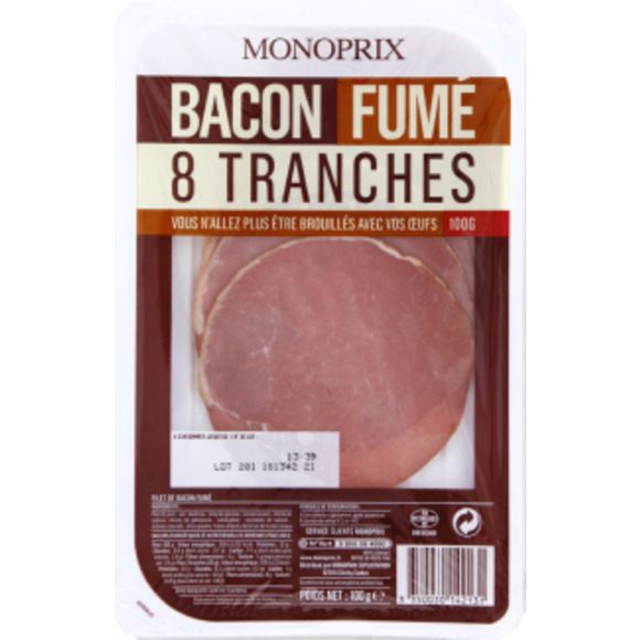 Filet de bacon fumé au bois de hêtre Pays de fabrication : FRANCE Monoprix Exploitation Monoprix Exploitation 92116 Clichy Cedex