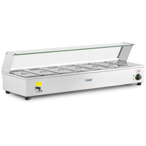 Bain-marie avec robinet de vidange – 6 bacs GN 1/3 – Vitrine de protection
