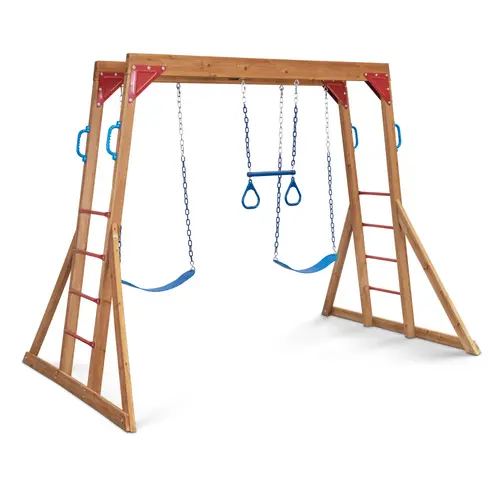 Point fort : ce portique de jardin comprend des anneaux de gymnastique sur lesquels vos enfants apprĂ©cieront se suspendre ou faire des exercices sportifs. Cette structure de jeux permet Ă  plusieurs enfants de s’amuser en mĂªme temps. En jouant avec des amis de l’école ou des voisins, vos enfants dĂ©velopperont d’importantes compĂ©tences sociales.