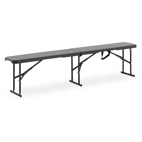 Ce banc de camping et de jardin noir de 1830 x 300 x 430 mm met à disposition une surface d’assise spacieuse, située juste à la bonne hauteur. Comme il se replie en un tour de main, on peut le refermer rapidement pour ensuite le transporter avec aise et le ranger de façon compacte. Étant léger, il se prête très bien à l’utilisation mobile lors des réceptions et des évènements similaires.