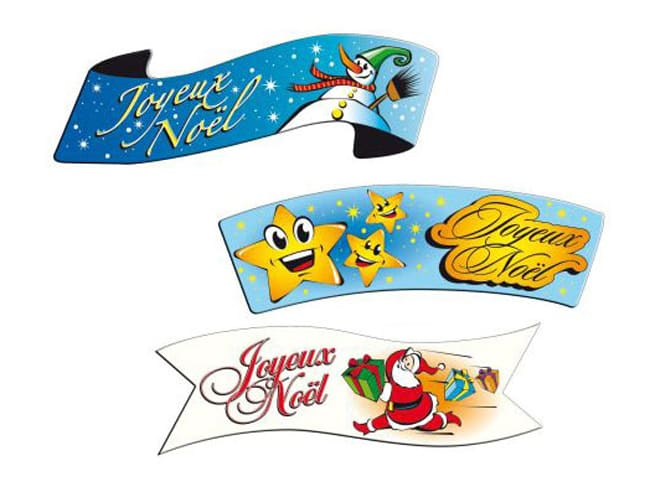 Sachet de 24 banderoles “Joyeux Noël” en azyme aromatisé.
