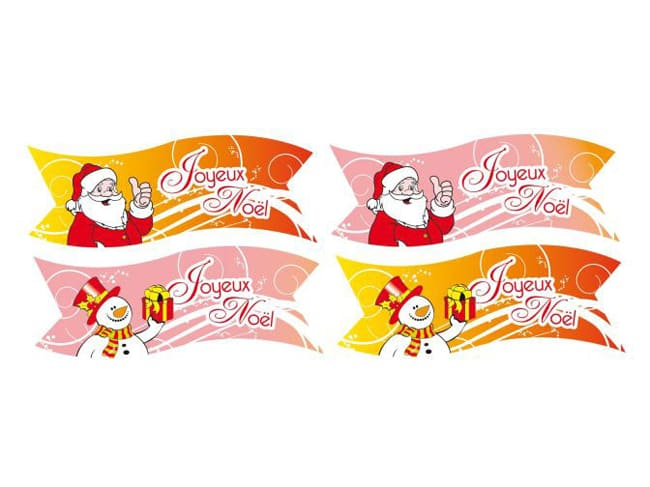 Sachet de 24 banderoles “Joyeux Noël” en azyme aromatisé. Spécialement conçu pour la décoration de la traditionnelle bûche de Noël. Produit sans gluten et sans E171.