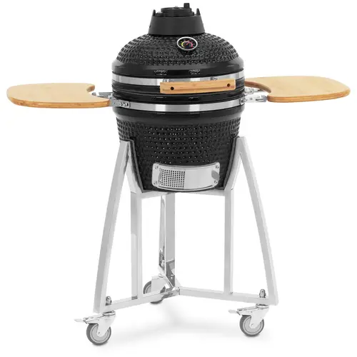 Ce barbecue en céramique d’Uniprodo peut tout faire : fumer, cuire au four, griller et saisir – le tout en un seul appareil polyvalent. Grâce à une céramique émaillée de haute qualité, ce barbecue Kamado conserve la chaleur et l’humidité à l’intérieur et cuit vos aliments à la perfection. Ces méthodes de préparation polyvalentes rendent ce barbecue adapté aussi bien aux amateurs de barbecue, aux entreprises de restauration qu’aux événements en plein air. Ce barbecue sur roulettes impressionne par ses deux étagères latérales pour vos ustensiles de barbecue, etc.