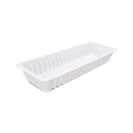 Ces barquettes plastique 2 pied pour utilisation froide ou chaude possède une longueur de 271mm, une largeur de 103 mm et une hauteur de 49 mm.