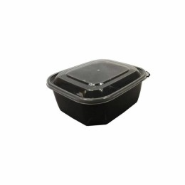 Barquette plastique PP noire avec couvercle 500 ml – par 408