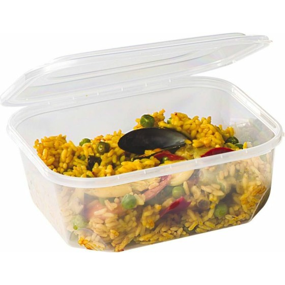 La barquette alimentaire à couvercle 1500 ml est munie d’un couvercle à charnière renforcé qui permet la conservation d’aliments solides mais aussi d’aliments plus liquides. Aucun risque qu’un liquide ne s’échappe, elle est totalement hermétique. Ainsi, vous pouvez conserver vos préparations chaudes ou froides à l’intérieur en toute sécurité, même en cas de transport de vos barquettes en plastique.