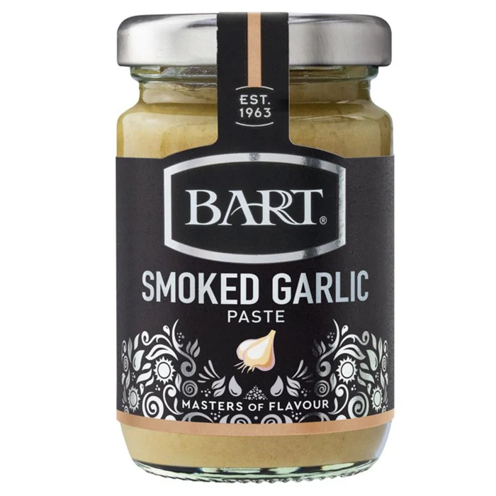 Smoked Garlic Puree (48%), Garlic Puree, Sunflower Oil, Smoked Garlic Granules (4%), Salt, and Lemon Juice Concentrated (Lemon Juice, Sulphite), Acid: Citric Acid