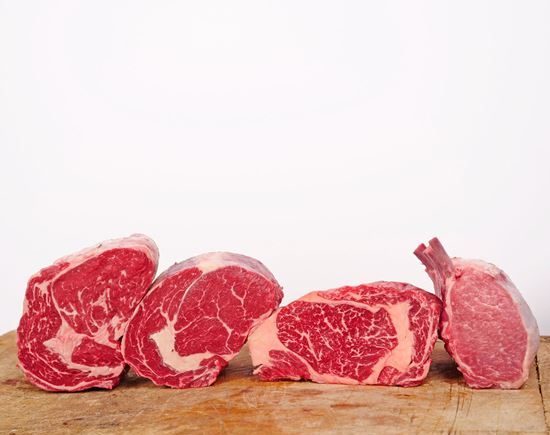SĂ©lection de 4 viandes d’exception non maturĂ©es.