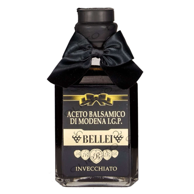 Aceto Balsamico di Modena 12 ans IGP Invecchiato  “Balsamico Nastro nero” 250 ml dans une élégante bouteille en verre –  Acetaia Bellei.