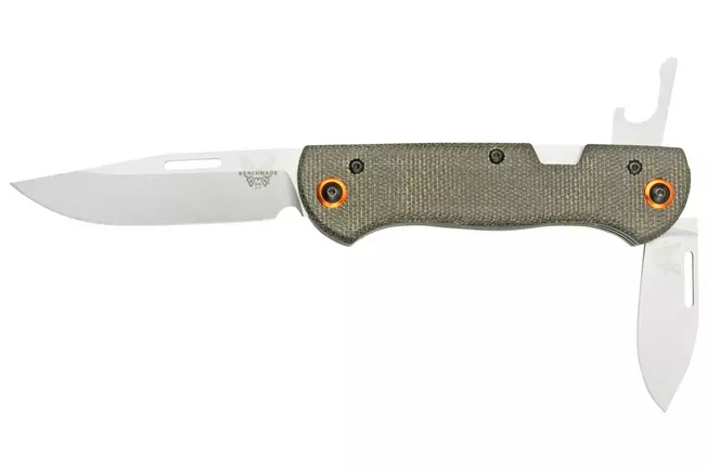 Le Benchmade Weekender 317-1 Green Canvas Micarta est un couteau de poche slipjoint robuste. Parfait pour les week-ends dans la nature. Avec deux lames et un décapsuleur, le Weekender a tout ce dont vous avez besoin pour effectuer les tâches de base dans le camp. De la menuiserie et de la préparation des aliments à l’ouverture d’une boisson froide au coin du feu.