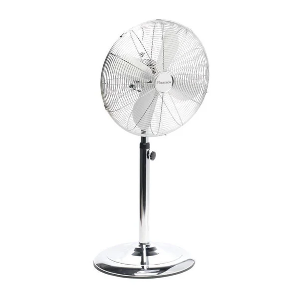 Bestron Ventilateur Sur Pied – Panier 45cm – 50w – Inox Finition Chrome- Debit Dair 59,32m3/min. – Vitesse De Lair 3,26m/sec Bestron