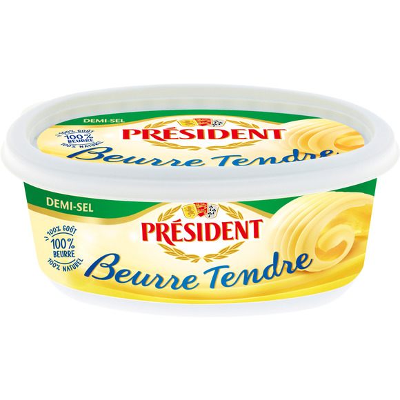 Président Beurre Tendre Demi Sel Beurrier250g Pays de fabrication : FRANCE DLC minimum garantie: 7 jours