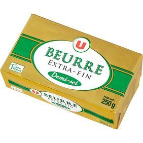 Beurre pasteurisé demi-sel 80% de matière grasse CREME DE LAIT pasteurisée, sel (2%), ferments (dont LAIT)