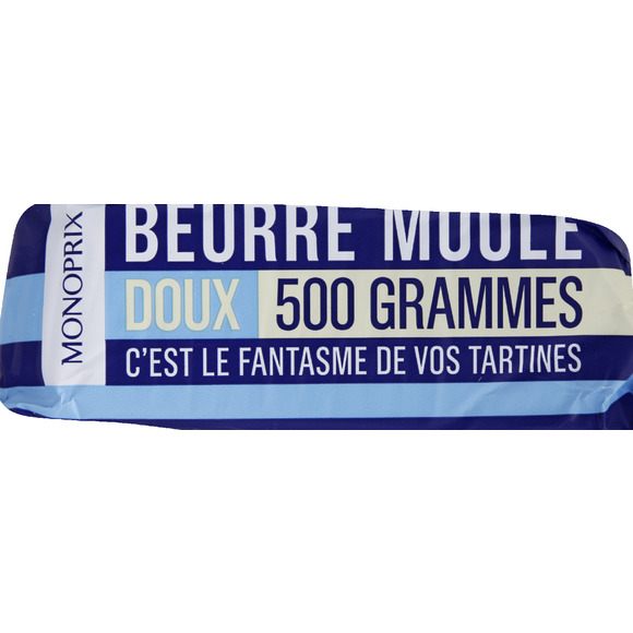 Beurre extra-fin pasteurisé doux 82% de matières grasses Pays de fabrication : FRANCE DLC minimum garantie: 7 jours Monoprix Exploitation Monoprix Exploitation 92116 Clichy Cedex