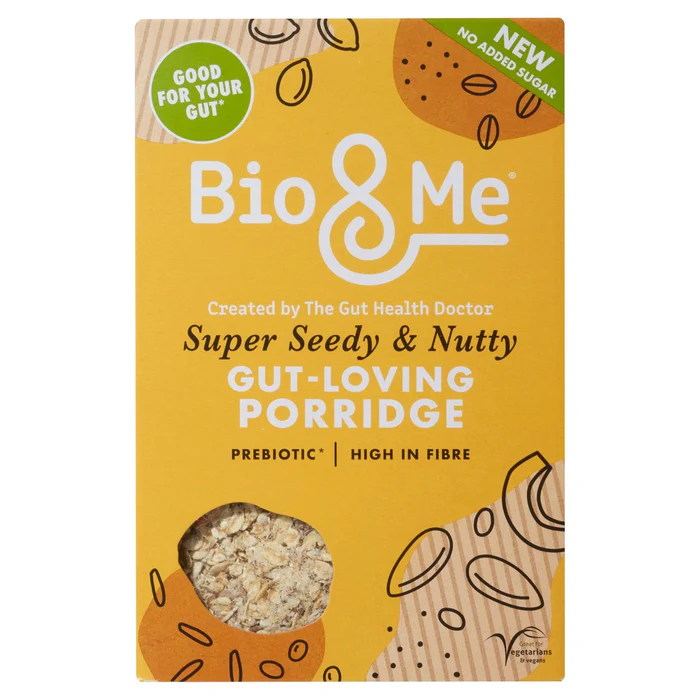 Delicious Diversity & Good Gut Health. At Bio&Me, we believe that eating deliciously diverse foods is key to good gut health. Packed with 14 fabulous fruits, vegetables, whole grains, nuts and seeds, our prebiotic porridge gives your biome the diversity it loves to help it thrive. This porridge contains 2g of your 12g per day of chicory inulin, which contributes to normal bowel function by increasing stool frequency. Essentially, it helps you poop more regularly. Created by the gut health doctor, it’s what’s on the Inside That Counts! High in Fiber, No Added Sugar, Great for vegetarians & vegans.