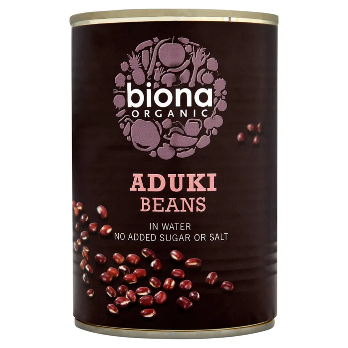 Organic Aduki beans in water. Organic, No added sugar or salt, No BPA used in lining