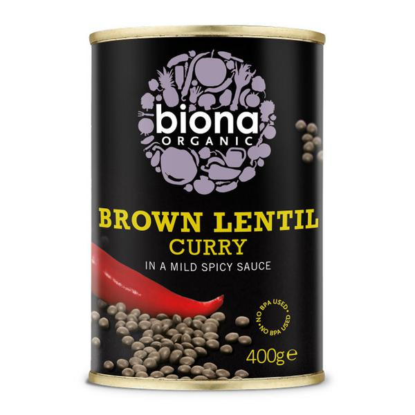 Organic Brown Lentil Curry ingredients:Â Lentils* (60%), water, tomato paste*, extra virgin olive oil*, onion*, sea salt, corn starch*, spices*, herbs*, chilli pepper* (0.03%) * = Certified Organic Ingredients