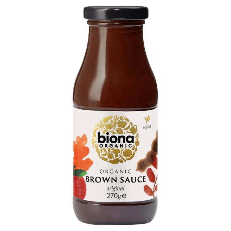 Rich and tangy brown sauce in a glass bottle. Made with high quality organic ingredients including tomatoes, balsamic vinegar and a mix of aromatic spices for a classic British sauce. Certified Organic & GMO Free. Organic, Suitable for vegans. Suitable for Vegetarians.
