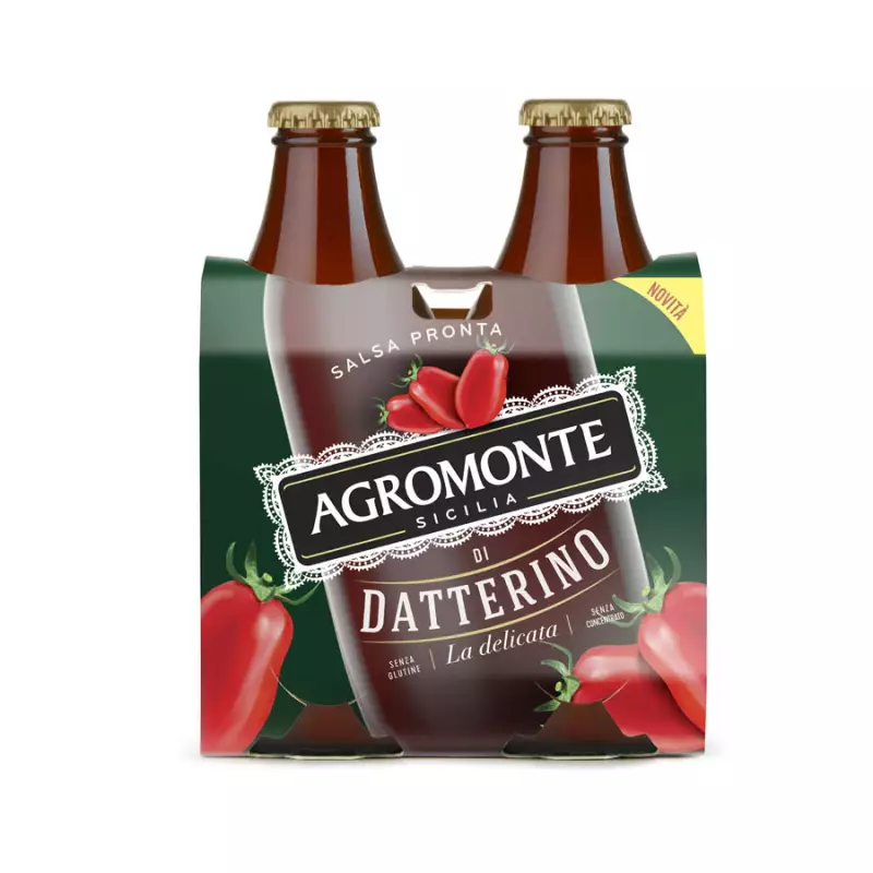 The Bipack of Agromonte’s Ready-to-use Datterino Tomato Sauce offers all the sweetness and delicacy of the datterino tomato, in a practical format designed to always have the authentic taste of Sicilian tomato sauce at hand. Made with 97% date tomatoes grown in greenhouses and harvested by hand, this sauce is enriched with basil, carrots, onions, celery and a touch of extra virgin olive oil, for a sweet and creamy flavour that conquers all, even the little ones.