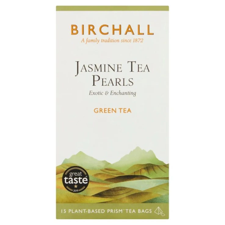 Birchall Jasmine Tea Pearls combine the mild sweetness of green tea with the soft floral notes of jasmine flowers. In our pursuit of quality we have expertly sourced these exquisite jasmine pearls from China’s Fujian province, where the finest example of this classic green tea are harvested each year. Upon picking, tender green tea leaves are carefully rolled into silvery pearls and then elaborately infused with the natural scent of fragrant jasmine blossom. Once steeped, these delicate pearl-shaped treasures unfurl to release the intoxicating aroma of jasmine and a pale, light bodied liquor that can be enjoyed throughout the day. Our plant-based Prismâ„¢ Tea Bags release the full flavor of our loose leaf tea and allow for the purest infusion. They’re made from biodegradable plant starch and are industrially compostable so please dispose of them in your food waste. Exotic & enchanting, Great taste 2019, Rich in anti-oxidants.
