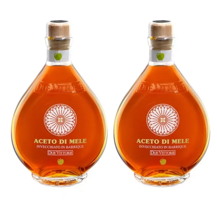 Due Vittorie Barrel Aged Apple Vinegar in 500 ml bottle is even more convenient thanks to this promotional 2-bottle set at an unmissable price. An apple vinegar with an intense fruity flavor, made from the best quality fresh apples, perfect for enhancing your vegetable dishes but also for sweet and sour preparations such as marinades and preserves.