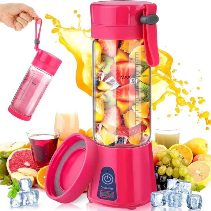 Description produit – Blender électrique Smoothie 0,4L avec USB rechargeable rose rouge Vendos85