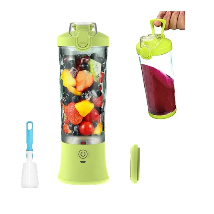 MIX & PULSE MODE – Un clic pour le mode mix parfait pour les bananes, les fraises et les glaçons. Le mode impulsion puissant fait tourner le moteur à grande vitesse pour les salades, les confitures, les fruits congelés et les noix. Double-cliquez pour le mode impulsion et contrôlez le temps selon la situation. Le mode impulsion passe automatiquement en mode mix après 5 secondes d’inactivité.MINI MIXEUR AMÉLIORÉ – Le mélangeur utilise un puissant moteur en cuivre de 240 watts et une vitesse de rotation de 18 000 tr / min. Les lames en acier inoxydable à 6 pales permettent de broyer facilement les glaçons, les fruits et les légumes. Parfait pour préparer des smoothies et des shakes nutritifs et sains en seulement 30 secondes !MIXEUR PORTABLE – Mixeur portable avec bouchon de bouteille de sport et sangle de transport. Sans BPA et lavable au lave-vaisselle. Capacité de 600 ml, poids de seulement 0,65 kg, tandis que la bouteille de sport portable ne pèse que 0,3 kg. Parfait pour une utilisation en intérieur et en extérieur, les voyages, le sport ou l’école. Après le mixage, vous pouvez remettre le bouchon inférieur et déguster vos smoothies et shakes n’importe où et à tout moment !PORT DE CHARGE TYP-C – Le mixeur portable dispose d’une batterie intégrée de 4000 mAh et utilise un port de charge Type-C. En outre, il y a 12 lumières LED qui indiquent l’état de la batterie et les différents modes de mélange. Plus la batterie est pleine, plus les lumières sont vertes, plus elle est faible, plus elles sont rouges. L’état de la batterie est indiqué par les lumières !